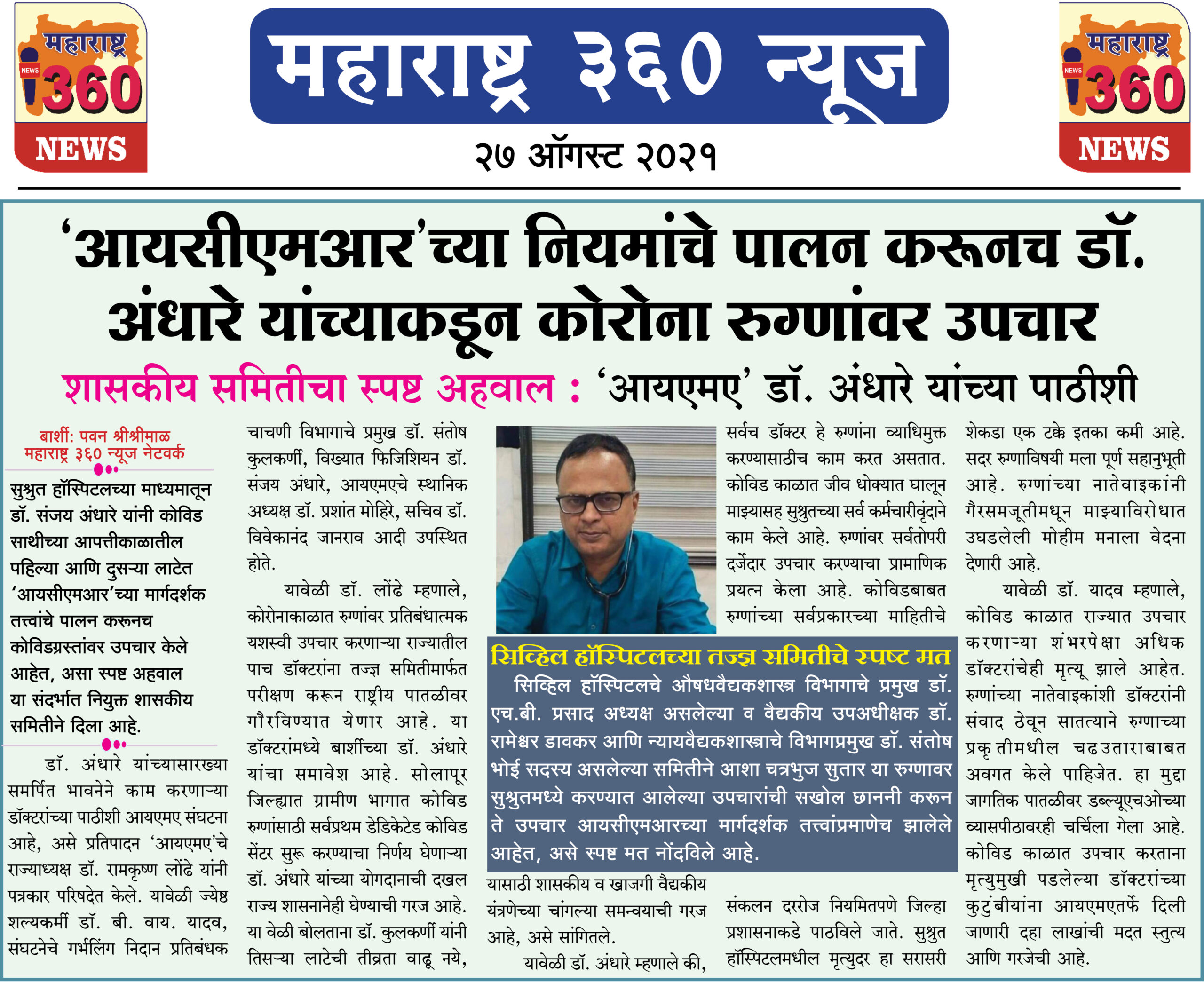 सुश्रुत हॉस्पिटलच्या माध्यमातून डॉ. संजय अंधारे यांनी कोविड साथीच्या आपत्तीकाळातील पहिल्या आणि दुसऱ्या लाटेत ‘आयसीएमआर’च्या मार्गदर्शक तत्त्वांचे पालन करूनच कोविडग्रस्तांवर उपचार केले आहेत, असा स्पष्ट अहवाल या संदर्भात नियुक्त शासकीय समितीने दिला आहे.