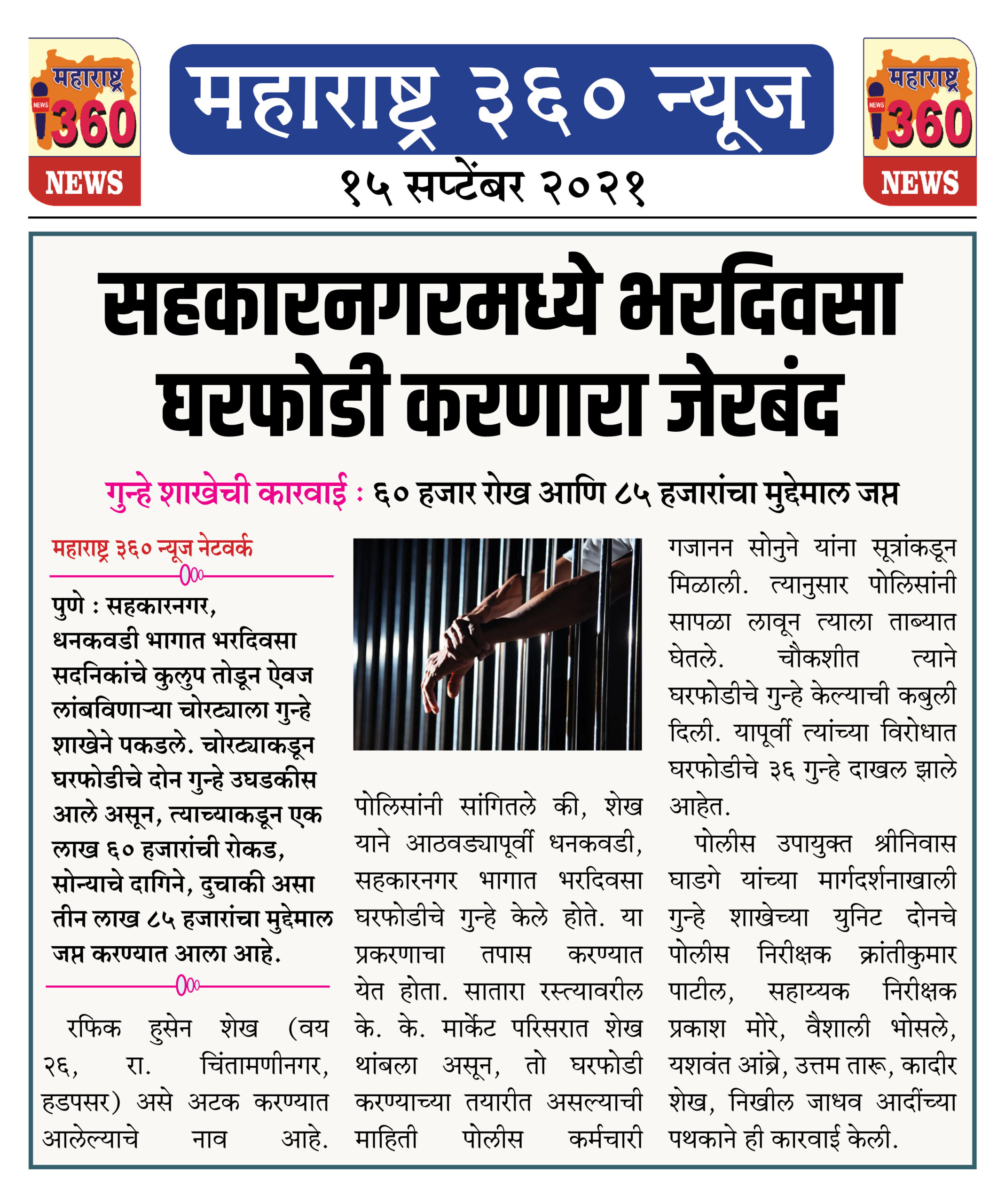 त्यानुसार पोलिसांनी सापळा लावून त्याला ताब्यात घेतले. चौकशीत त्याने घरफोडीचे गुन्हे केल्याची कबुली दिली. यापूर्वी त्यांच्या विरोधात घरफोडीचे ३६ गुन्हे दाखल झाले आहेत.