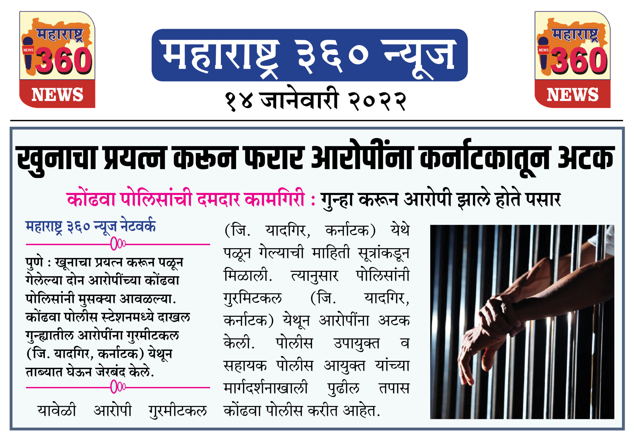 यावेळी आरोपी गुरमीटकल (जि. यादगिर, कर्नाटक) येथे पळून गेल्याची माहिती सूत्रांकडून मिळाली. त्यानुसार पोलिसांनी गुरमिटकल (जि. यादगिर, कर्नाटक) येथून आरोपींना अटक केली. पोलीस उपायुक्त व सहायक पोलीस आयुक्त यांच्या मार्गदर्शनाखाली पुढील तपास कोंढवा पोलीस करीत आहेत.