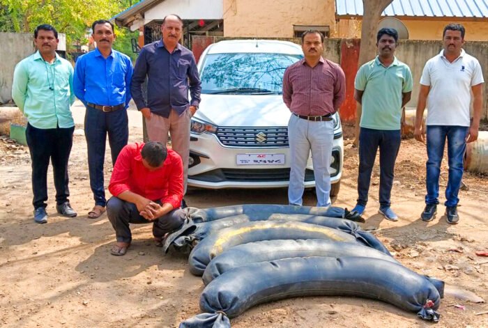 सुनिल बाबुराव चव्हाण (वय 36 रा. गणपत तांडा, बक्षीहिप्परगा ता. दक्षिण सोलापूर) ही व्यक्ती मारुती सुझुकी एर्टीगा मधून पाच रबरी ट्यूबमध्ये पाचशे लिटर हातभट्टी दारु वाहतूक करतांना आढळून आली.