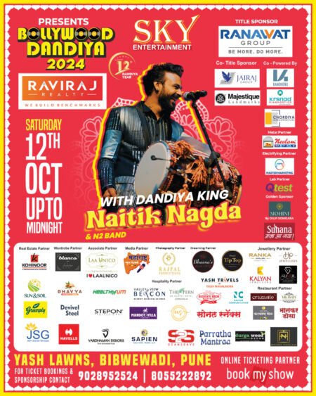 पुणे : दांडिया प्रेमींसाठी स्काय एन्टरटेनमेंटच्या वतीने बॉलीवूड दांडिया 2024 चे आयोजन करण्यात आले आहे. नवरात्रीच्या काळात 12 ऑक्टोबर रोजी बिबवेवाडीच्या यश लॉन्समध्ये हा कार्यक्रम होणार आहे. या कार्याकामाला महाराष्ट्र न्यूज नेटवर्क मिडिया पार्टनर असणार आहे.
