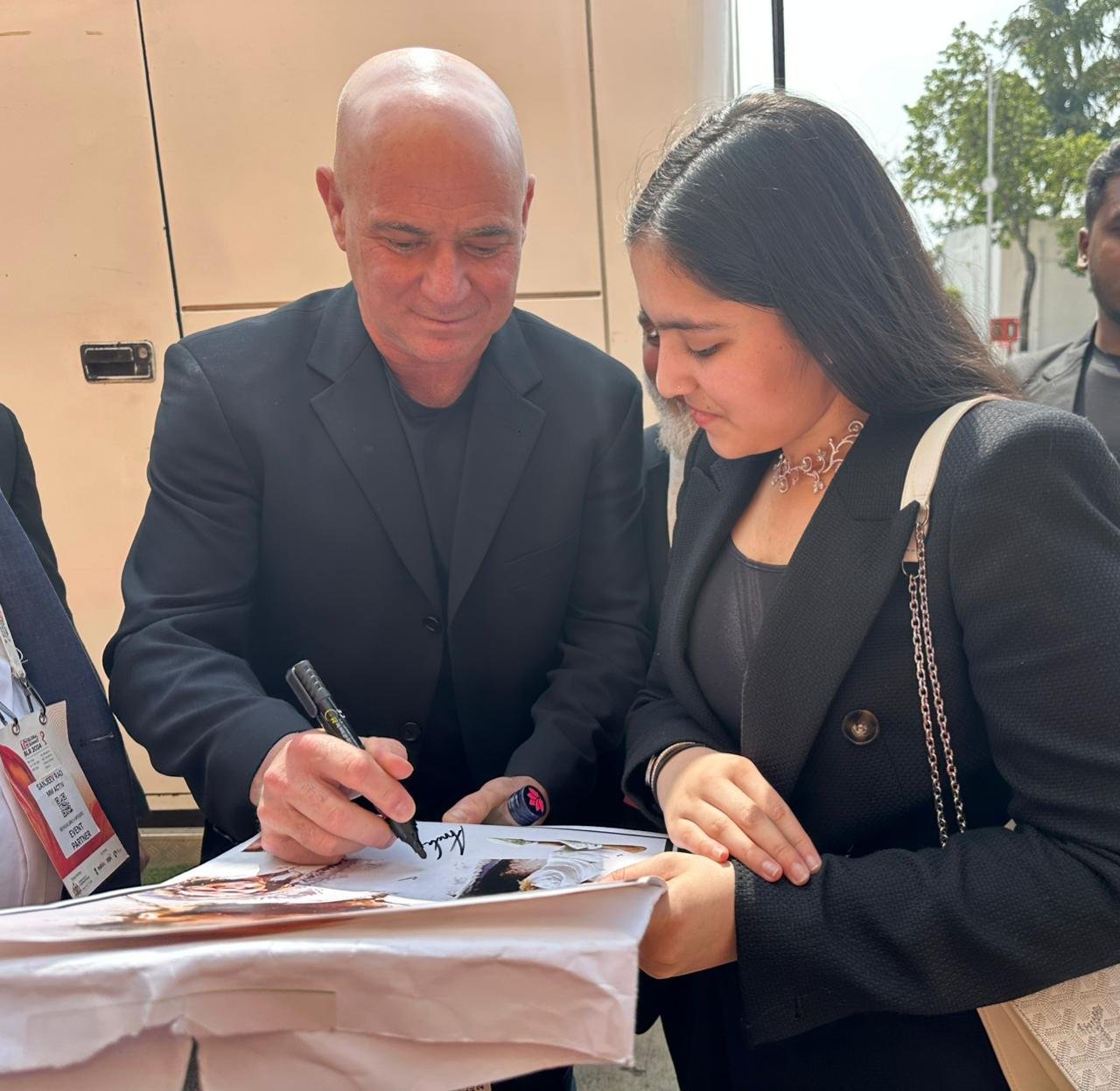 बेंगलोर : टेनिस के दिग्गज और दस बार के ग्रैंड स्लैम विजेता आंद्रे अगासी ने बेंगलुरु के एक कार्यक्रम में युवा कलाकार आद्या आनंद चोरडिया के आर्ट वर्क की प्रशंसा की। आघ्या सिम्बॉयसिस कॉलेज की उत्कृष्ट विद्यार्थिनी है। आद्या बहोत होनहार विद्यार्थिनी हे और साथ ही वो टेनिस की भी चाहती हैं। पढाई के साथ ही साथ आद्या कुकिंग और आर्ट मे रुची रखती है और दोनो मे वह बेहद कुशल और माहिर है। कार्यक्रम के दौरान आद्या की मुलाकात आंद्रे अगासी से हुई। बातचीत के दौरान जब अगासी ने उनके कला कार्यों को देखा, तो उन्होंने उनकी कला और रचनात्मकता की जमकर सराहना की। अगासी ने कहा कि आद्या का काम उनके लिए प्रेरणादायक है और यह दर्शाता है कि कला में कितनी गहराई और संभावनाएं हैं। यह पल आद्या के लिए न केवल गर्व का था, बल्कि उनके करियर के लिए भी एक बड़ी उपलब्धि है।
