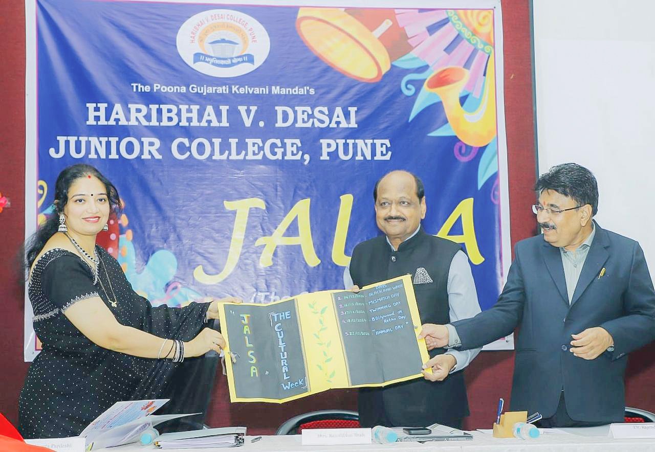 पुणे : द पूना गुजराती केळवणी मंडळ संचलित हरिभाई व्ही. देसाई कनिष्ठ महाविद्यालयात ‘जलसा’ सांस्कृतिक सप्ताहाचा उद्घाटन सोहळा शनिवार, १४ डिसेंबर २०२४ रोजी उत्साहात पार पडला.