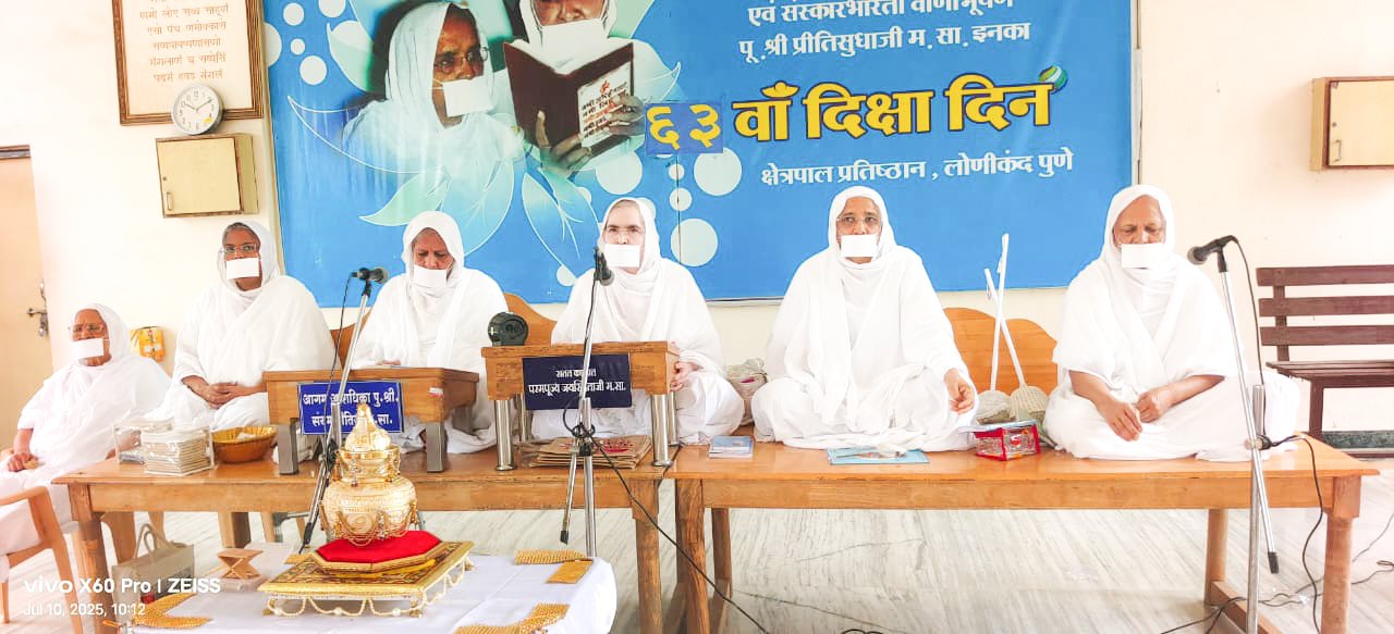 पुणे : संस्कारभारती वाणीभूषण प. पू. श्री प्रीतिसुधाजी म. सा. की अन्तेवासिनी साध्वीवृंद का मंगल प्रवेश श्री क्षेत्रपाल प्रतिष्ठान, लोणीकंद में सम्पन्न हुआ।