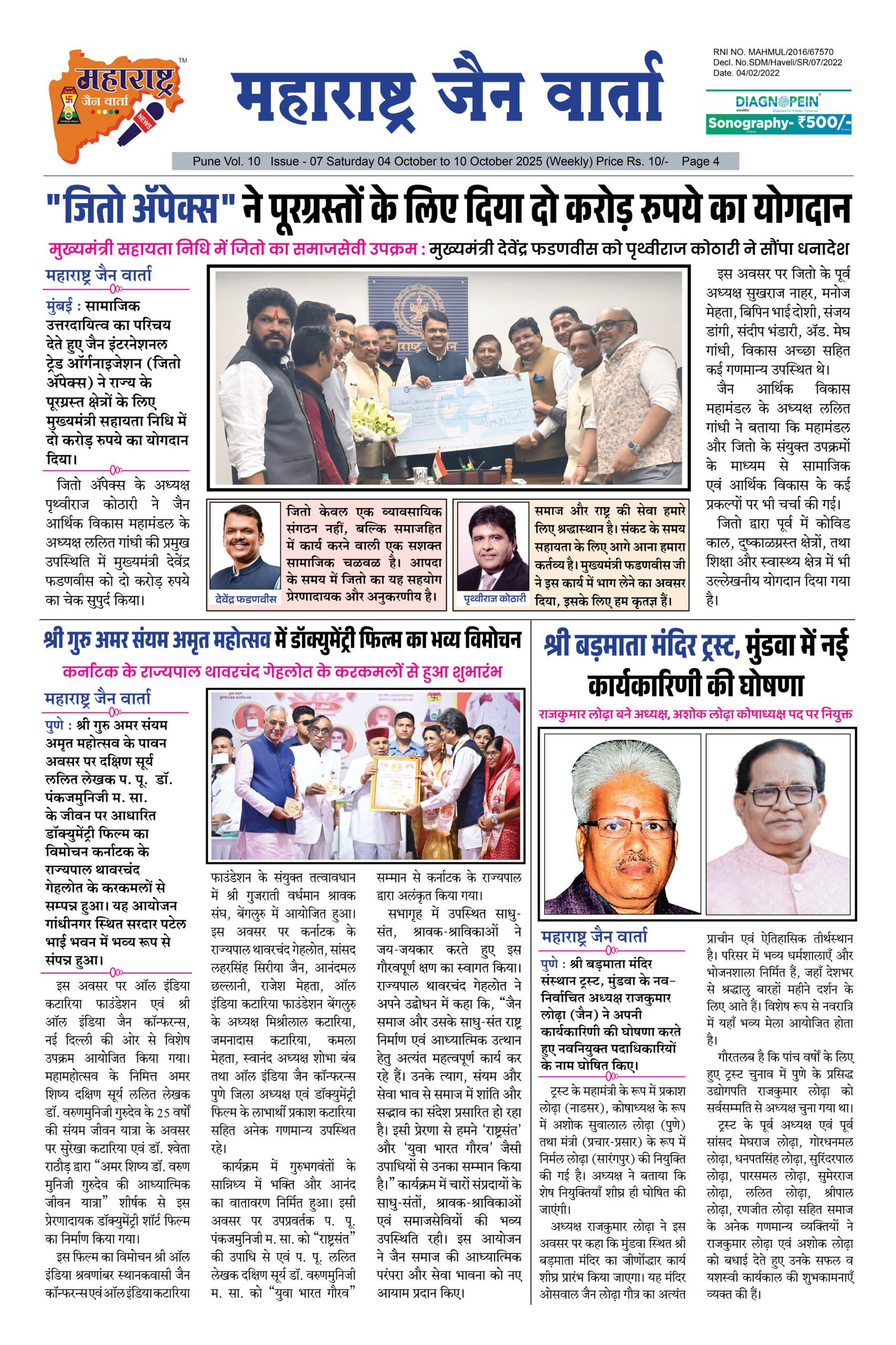 Maharashtra Jain Warta Weekly E Paper 04 October To 10 October 2025