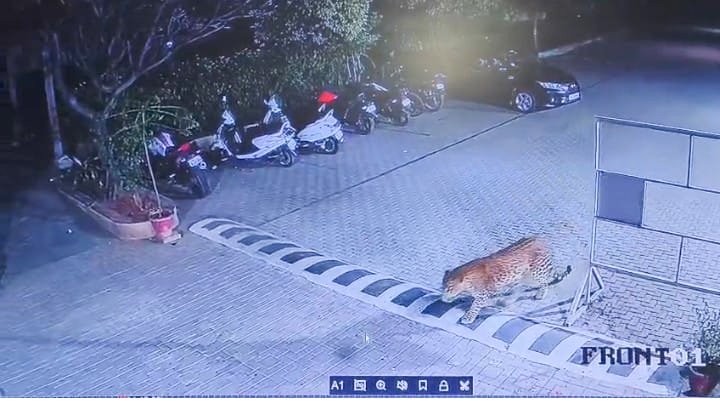 सकाळी नागरिकांनी सीसीटीव्ही पाहिल्यानंतर हा प्रकार लक्षात आला. तो एका गेटमधून आत आला. सोसायटीत काही क्षण थांबल्यानंतर तो दुसऱ्या गेटने पळून गेला. तो नेमका कुठे गेला, हे समजू शकले नाही.