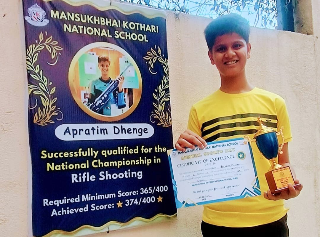 पुणे : रायफल शूटिंग या अत्यंत कौशल्यपूर्ण व एकाग्रतेची मागणी करणाऱ्या खेळात इयत्ता सहावीमध्ये शिक्षण घेत असलेला अप्रतिम आशिष ढेंगे याने उल्लेखनीय कामगिरी करत राष्ट्रीय अजिंक्यपद स्पर्धेसाठी पात्रता मिळवली आहे.