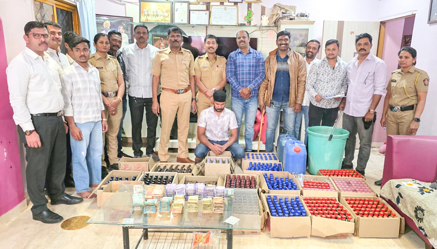 हातभट्टी व देशी दारूची बेकायदा विक्री करणाऱ्या गुन्हेगाराकडे आतापर्यंत सापडलेली ही सर्वाधिक रोकड असल्याचे दिसून येत आहे. अमर कौर ऊर्फ मद्रीकौर दादासिंग जुनी, दिलदारसिंग दादासिंग जुनी आणि देवाश्री जुनीसिंग (सर्व रा. काकडे वस्ती) अशी गुन्हा दाखल झालेल्यांची नावे आहेत.