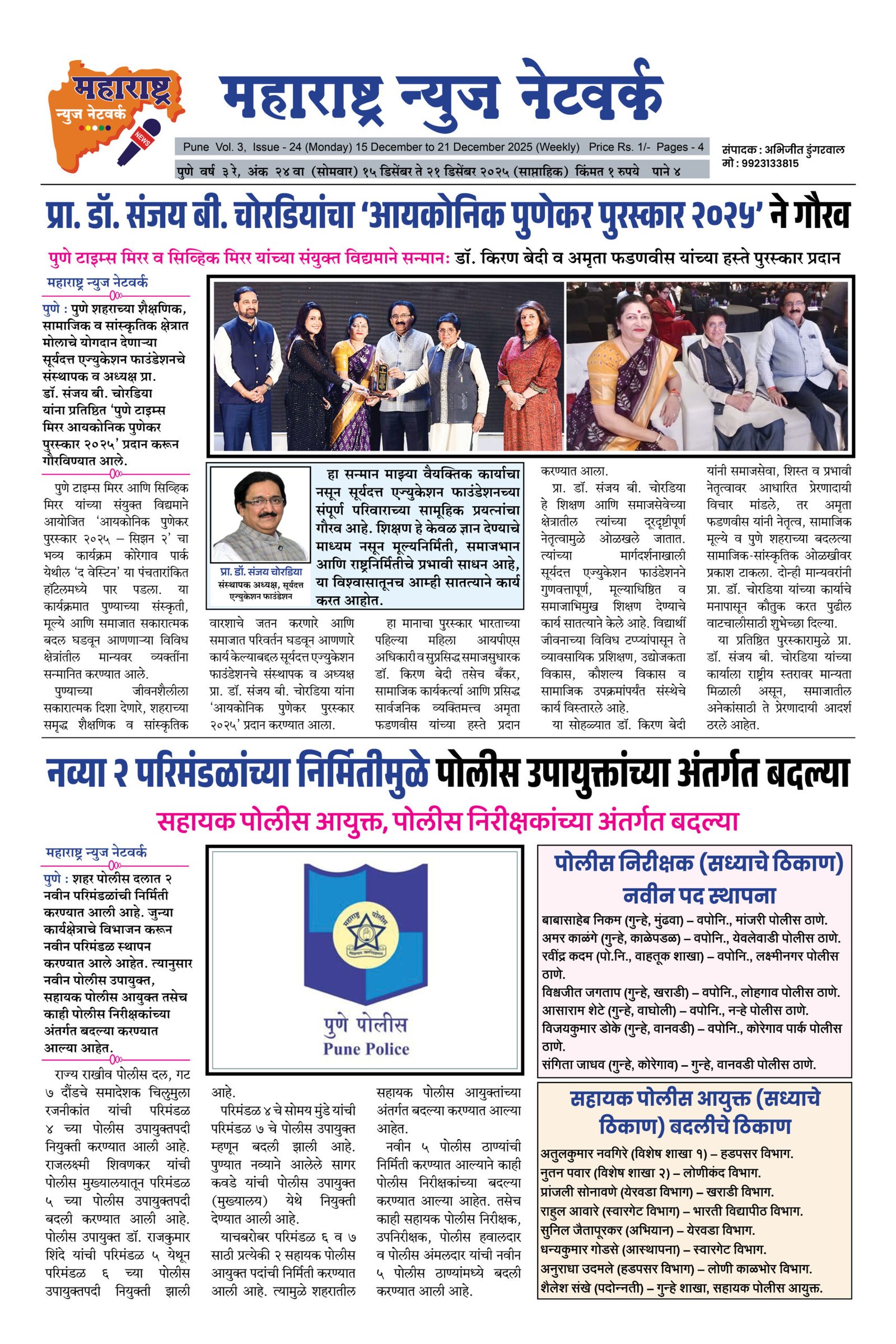 Maharashtra News Network 22 Dec to 28 Dec 2025