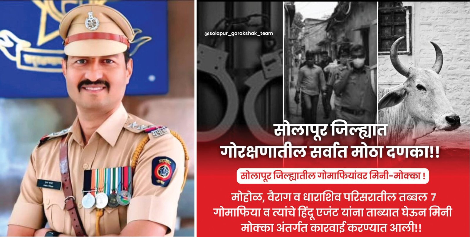 त्यानुसार वेगवेगळी पथके तयार करून कारवाई राबविण्यात आली. दि. ०५ जुलै २०२५ रोजी दुपारी ३.३० ते ४.३० वाजण्याच्या सुमारास मौने नरखेड, ता. मोहोळ, जि. सोलापूर येथे फिर्यादी हे गोमांस वाहतूक करणारी गाडी पकडण्यास गेले असता, आरोपींनी त्यांना अडवून शिवीगाळ, दमदाटी करत “गोमांस वाहतुकीची माहिती का देतोस” असे म्हणत जीवे मारण्याची धमकी दिली.