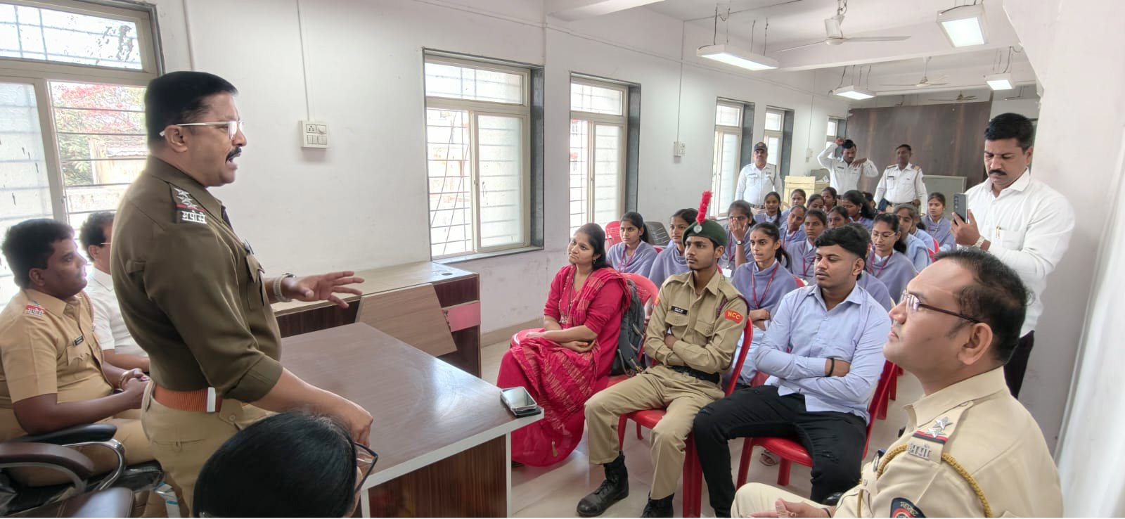 पोलीस निरीक्षक बालाजी कुकडे यांच्या नेतृत्वाखाली वाहतूक शाखेचे पोलीस उपनिरीक्षक महेश गळगटे, पोहेकॉ. विलास अडसूळ, पोकॉ. कुमार माने, पोकॉ. लतीफ मुजावर, पोकॉ. निलेश आनंतकवळस, पोकॉ. प्रवीण शहाणे, पोकॉ. शरद वाघमोडे, पोकॉ. हनुमंत चौधरी, पोकॉ. शरद सावळे, श्री शिवाजी महाविद्यालयाचे प्राचार्य ए. बी. शेख, प्रा. युवराज खुळे, प्राध्यापिका शिल्पा वाघ व विद्यार्थी प्रतिनिधी सोनल जाधव यांनी हा उपक्रम यशस्वीरीत्या राबवला.