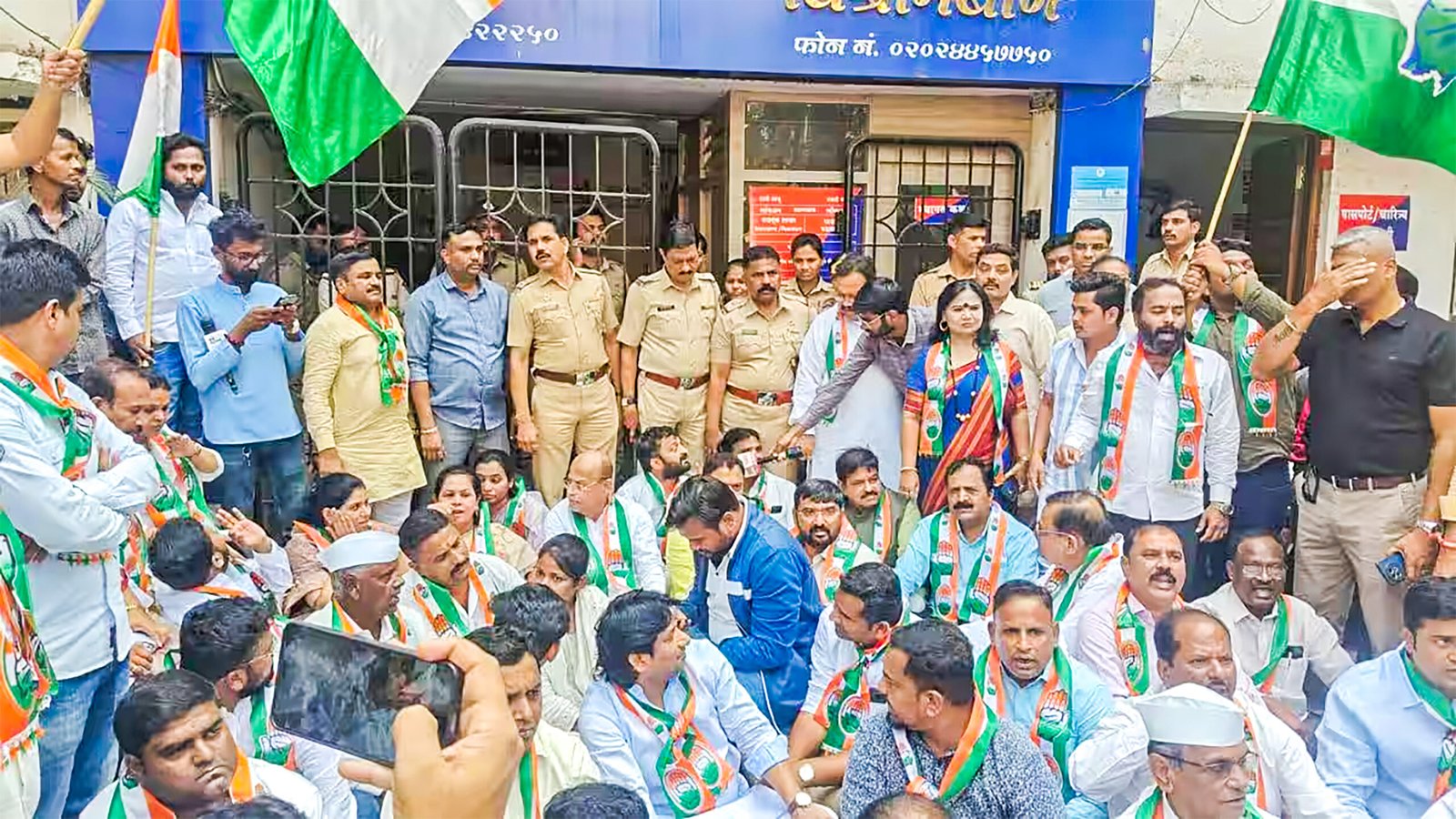 काँग्रेसच्या प्राची नितीन दुधाणे (वय ४२, रा. दुधाणेनगर, कर्वेनगर) यांनी शिवाजीनगर पोलीस ठाणे येथे फिर्याद दिली. त्यानुसार भाजपचे शहराध्यक्ष धीरज घाटे, युवा अध्यक्ष दुष्यंत मोहोळ आणि इतर ५० ते ६० कार्यकर्त्यांविरुद्ध गुन्हा दाखल करण्यात आला आहे.