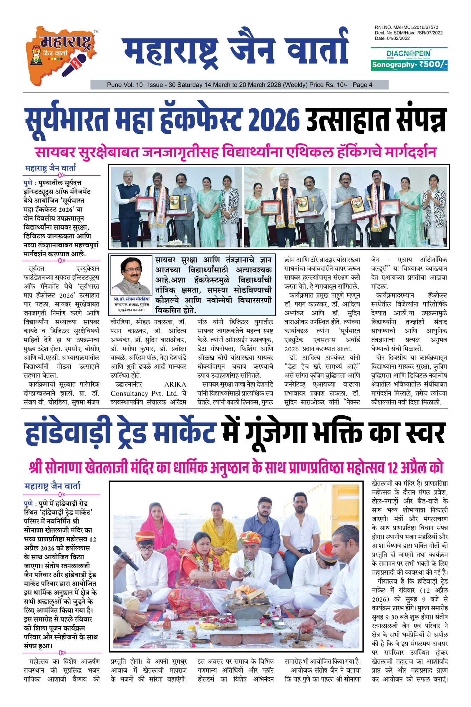 Maharashtra Jain Warta Weekly 14 March To 20 March 2026
