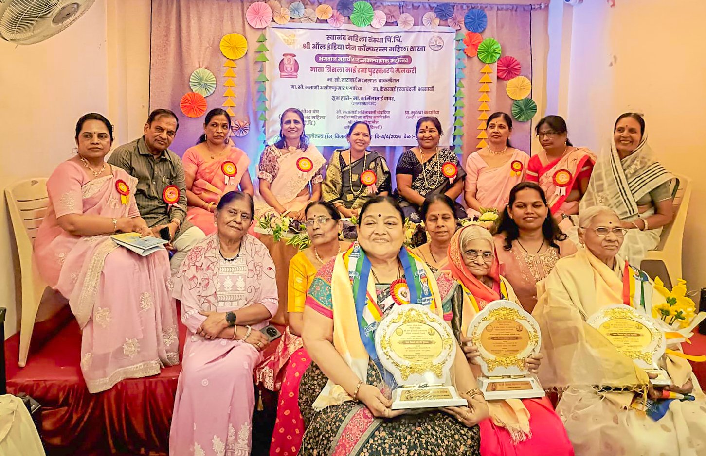 पिंपरी चिंचवड : भगवान महावीर जन्मकल्याणक आणि डॉ. बाबासाहेब आंबेडकर जयंतीच्या औचित्याने समाजासाठी आयुष्य समर्पित करणाऱ्या महिलांचा स्वानंद महिला संस्था, पिंपरी चिंचवड व श्री ऑल इंडिया जैन कॉन्फरन्स राष्ट्रीय महिला शाखेच्या वतीने गौरव करण्यात आला. संस्थेच्या रोप्यमहोत्सवी वर्षानिमित्त ‘माता त्रिशला माई रमा पुरस्कार’ देऊन महिलांचा सन्मान करण्यात आला.
