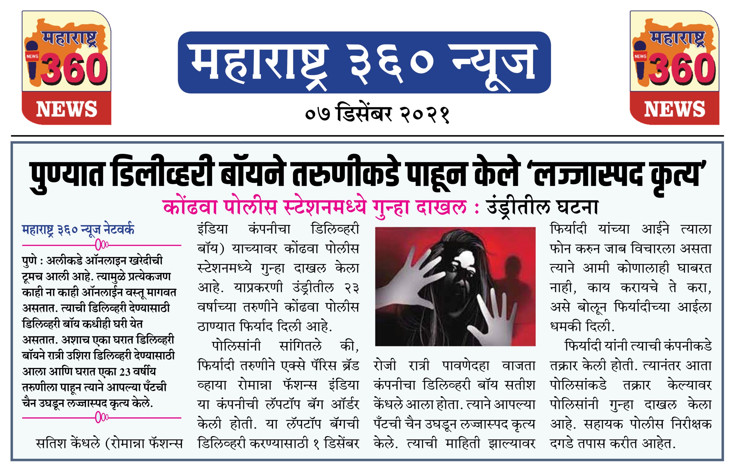 पोलिसांनी सांगितले की, फिर्यादी तरुणीने एक्से पॅरिस ब्रॅड व्हाया रोमान्ना फॅशन्स इंडिया या कंपनीची लॅपटॉप बॅग ऑर्डर केली होती. या लॅपटॉप बॅगची डिलिव्हरी करण्यासाठी १ डिसेंबर रोजी रात्री पावणेदहा वाजता कंपनीचा डिलिव्हरी बॉय सतीश केंधले आला होता. त्याने आपल्या पँटची चैन उघडून लज्जास्पद कृत्य केले. त्याची माहिती झाल्यावर फिर्यादी यांच्या आईने त्याला फोन करुन जाब विचारला असता त्याने आमी कोणालाही घाबरत नाही, काय करायचे ते करा, असे बोलून फिर्यादीच्या आईला धमकी दिली.