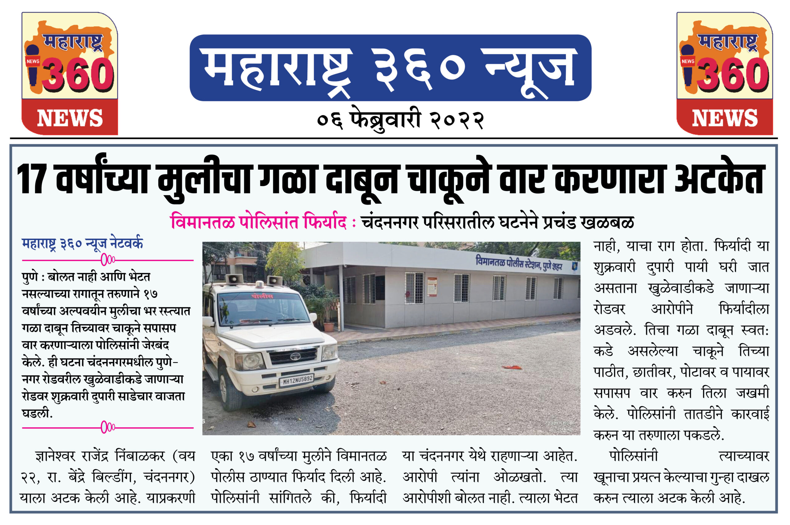 पोलिसांनी सांगितले की, फिर्यादी या चंदननगर येथे राहणाऱ्या आहेत. आरोपी त्यांना ओळखतो. त्या आरोपीशी बोलत नाही. त्याला भेटत नाही, याचा राग होता. फिर्यादी या शुक्रवारी दुपारी पायी घरी जात असताना खुळेवाडीकडे जाणाऱ्या रोडवर आरोपीने फिर्यादीला अडवले. तिचा गळा दाबून स्वत: कडे असलेल्या चाकूने तिच्या पाठीत, छातीवर, पोटावर व पायावर सपासप वार करुन तिला जखमी केले. पोलिसांनी तातडीने कारवाई करुन या तरुणाला पकडले. पोलिसांनी त्याच्यावर खूनाचा प्रयत्न केल्याचा गुन्हा दाखल करुन त्याला अटक केली आहे.