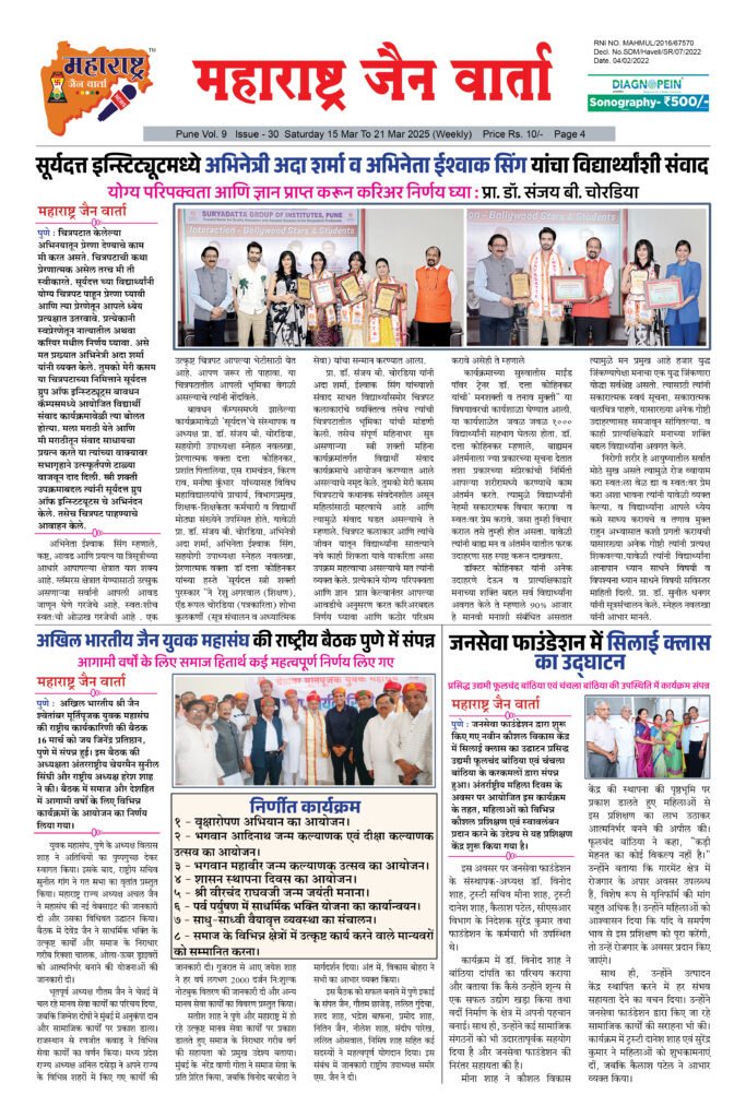 ← Back to Homepage Maharashtra Jain Warta 15 Mar To 21 Mar 2025 maharashtra jain warta • Maharashtra Jain Warta, MJW Weekly News • August 4, 2025 📥 Download News PDF Spread the love महाराष्ट्र जैन वार्ता