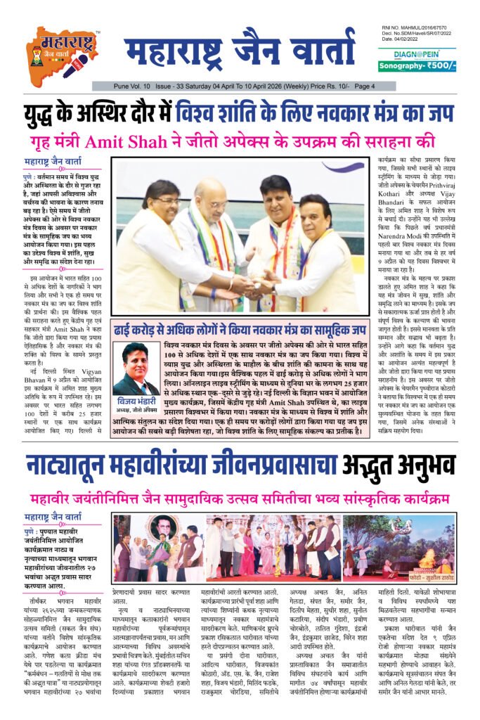 ← Back to Homepage Maharashtra Jain Warta Weekly 04 April To 10 April 2026 maharashtra jain warta • Maharashtra Jain Warta, MJW Weekly News, Social • April 14, 2026 📥 Download News PDF महाराष्ट्र जैन वार्ता [dearpdf id=”45479″ ][/dearpdf]