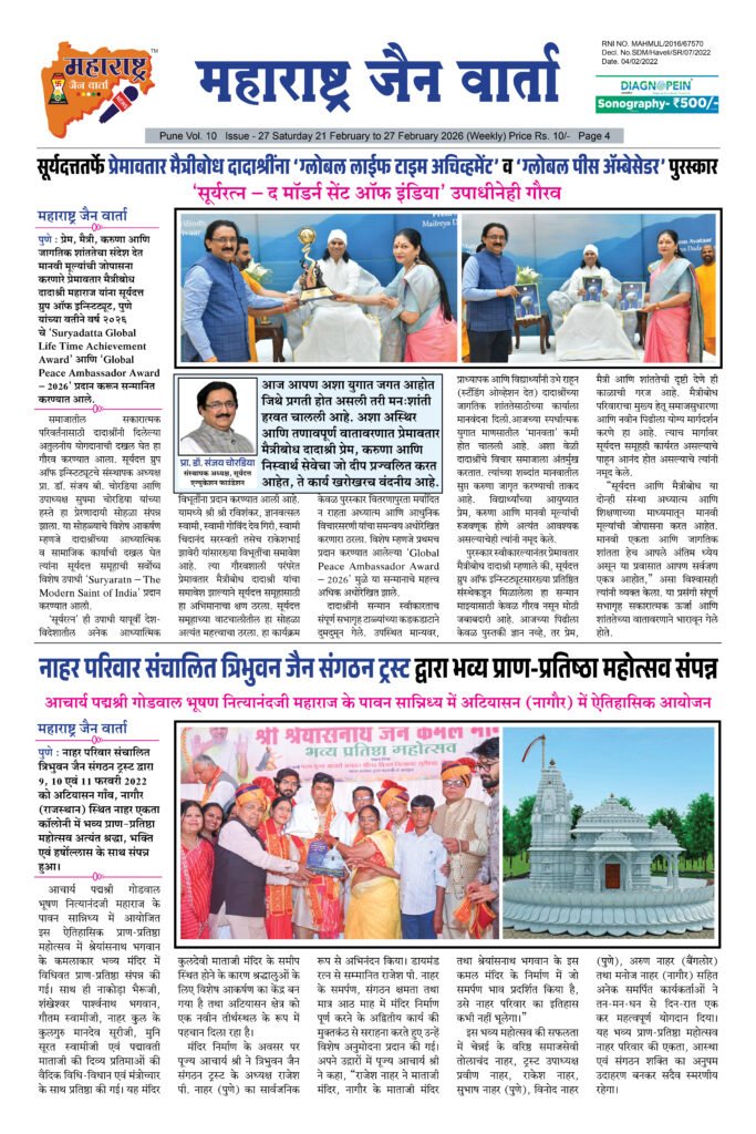 ← Back to Homepage Maharashtra Jain Warta Weekly 21 Feb To 27 Feb 2026 maharashtra jain warta • Maharashtra Jain Warta, MJW Weekly News, Social • February 28, 2026 📥 Download News PDF महाराष्ट्र जैन वार्ता [dearpdf id=”44249″ ][/dearpdf]