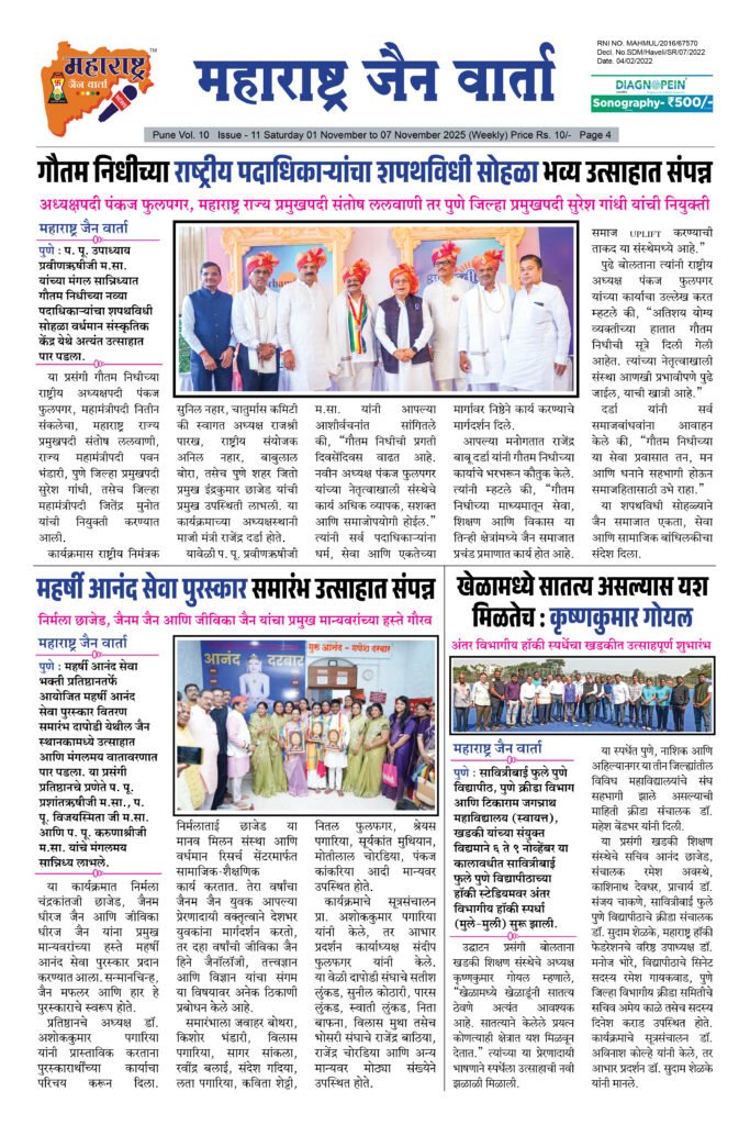 ← Back to Homepage Maharashtra Jain Warta Weekly E Paper 01 November To 07 November 2025 maharashtra jain warta • Maharashtra Jain Warta, MJW Weekly News • November 8, 2025 📥 Download News PDF महाराष्ट्र जैन वार्ता [dearpdf id=”40826″ ][/dearpdf]