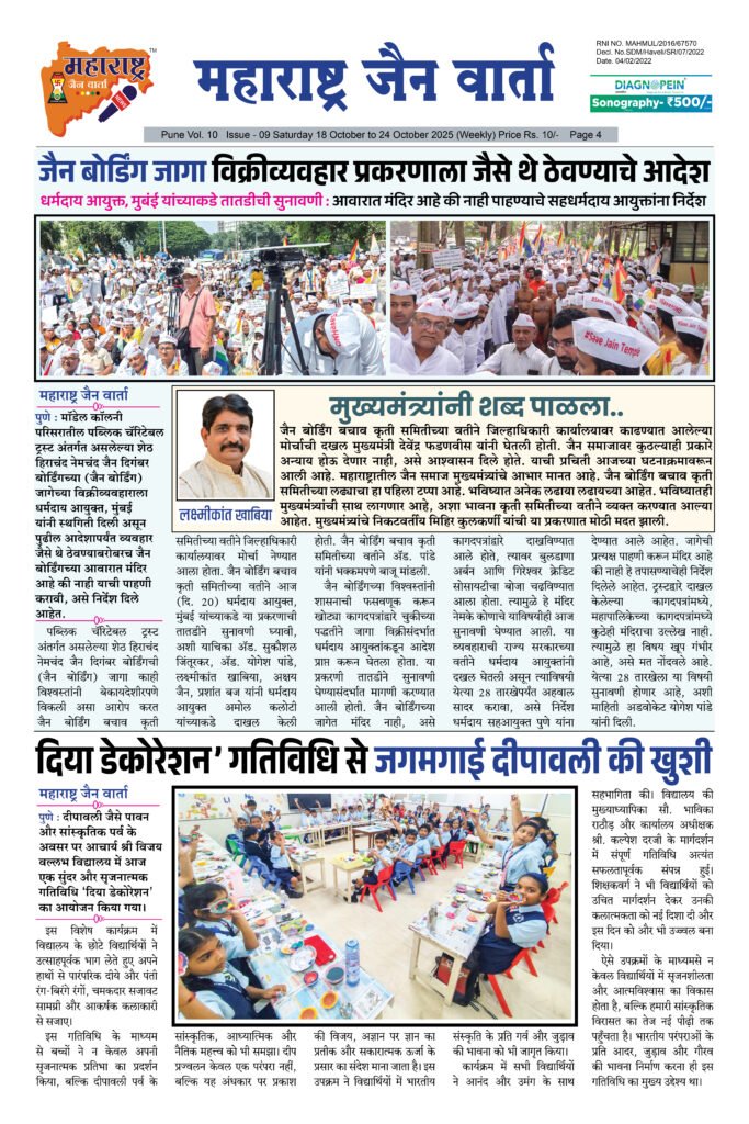 ← Back to Homepage Maharashtra Jain Warta Weekly E Paper 18 October To 24 October 2025 maharashtra jain warta • Maharashtra Jain Warta, MJW Weekly News • November 3, 2025 📥 Download News PDF महाराष्ट्र जैन वार्ता [dearpdf id=”40606″ ][/dearpdf]