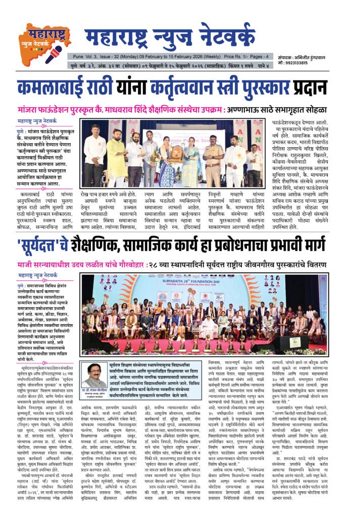 ← Back to Homepage Maharashtra News Network 09 FebTo 15 Feb 2026 maharashtra jain warta • Maharashtra News Networks, MNN - Weekly Issue, Social • February 23, 2026 📥 Download News PDF महाराष्ट्र न्यूज नेटवर्क [dearpdf id=”44062″ ][/dearpdf]