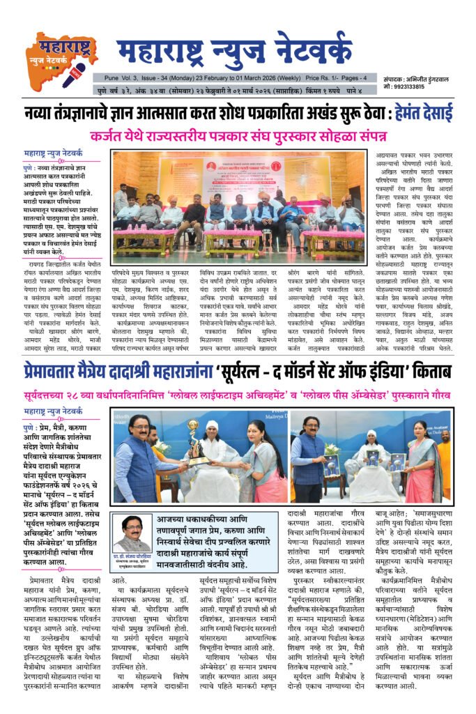 ← Back to Homepage Maharashtra News Network 23 Feb To 01 March 2026 maharashtra jain warta • Maharashtra News Networks, MNN - Weekly Issue, Social • February 28, 2026 📥 Download News PDF महाराष्ट्र न्यूज नेटवर्क [dearpdf id=”44254″ ][/dearpdf]