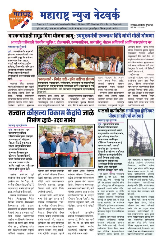 ← Back to Homepage Maharashtra News Network 26 May To 01 June 2025 maharashtra jain warta • Maharashtra News Networks, MNN - Weekly Issue • August 4, 2025 📥 Download News PDF Spread the love महाराष्ट्र न्युज नेटवर्क