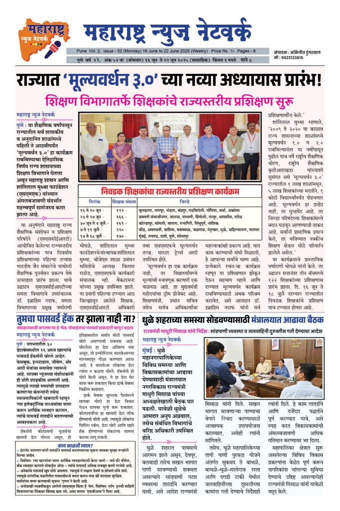 ← Back to Homepage Maharashtra News Netwrok 16 June To 22 June 2025 maharashtra jain warta • Maharashtra News Networks, MNN - Weekly Issue • August 4, 2025 📥 Download News PDF Spread the love महाराष्ट्र न्युज नेटवर्क