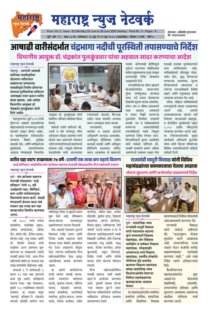 ← Back to Homepage Maharashtra News Netwrok 23 June To 29 June 2025 maharashtra jain warta • Maharashtra News Networks, MNN - Weekly Issue • August 4, 2025 📥 Download News PDF Spread the love महाराष्ट्र न्युज नेटवर्क