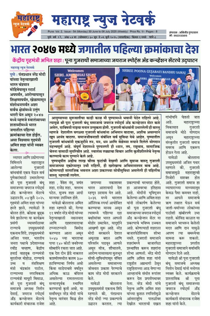 ← Back to Homepage Maharashtra News Netwrok 30 June To 06 July 2025 maharashtra jain warta • Maharashtra News Networks, MNN - Weekly Issue • August 4, 2025 📥 Download News PDF Spread the love महाराष्ट्र न्युज नेटवर्क